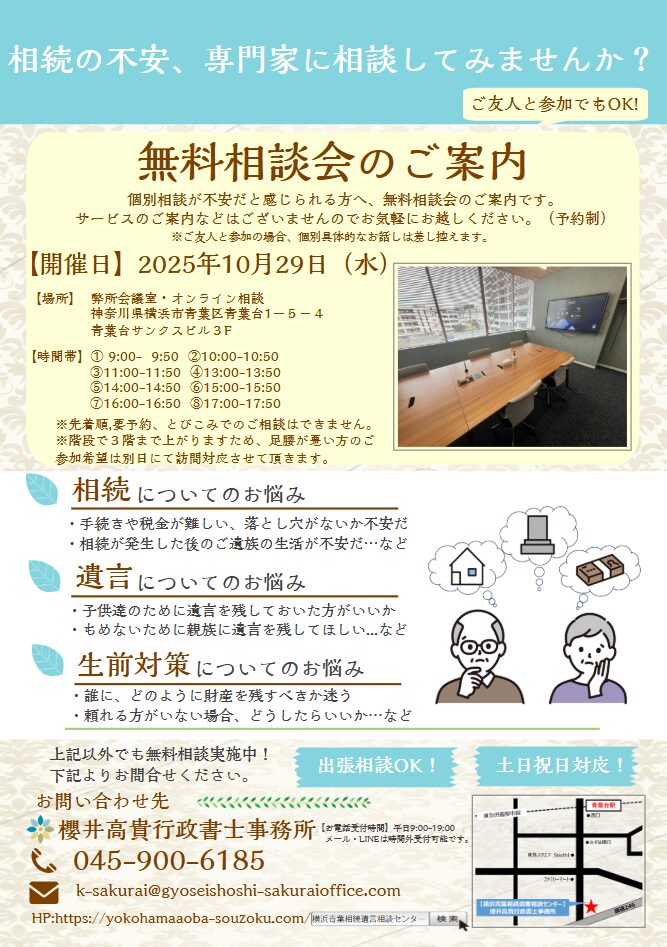 10月の無料相談会日程が決定しましたのでお知らせいたします。